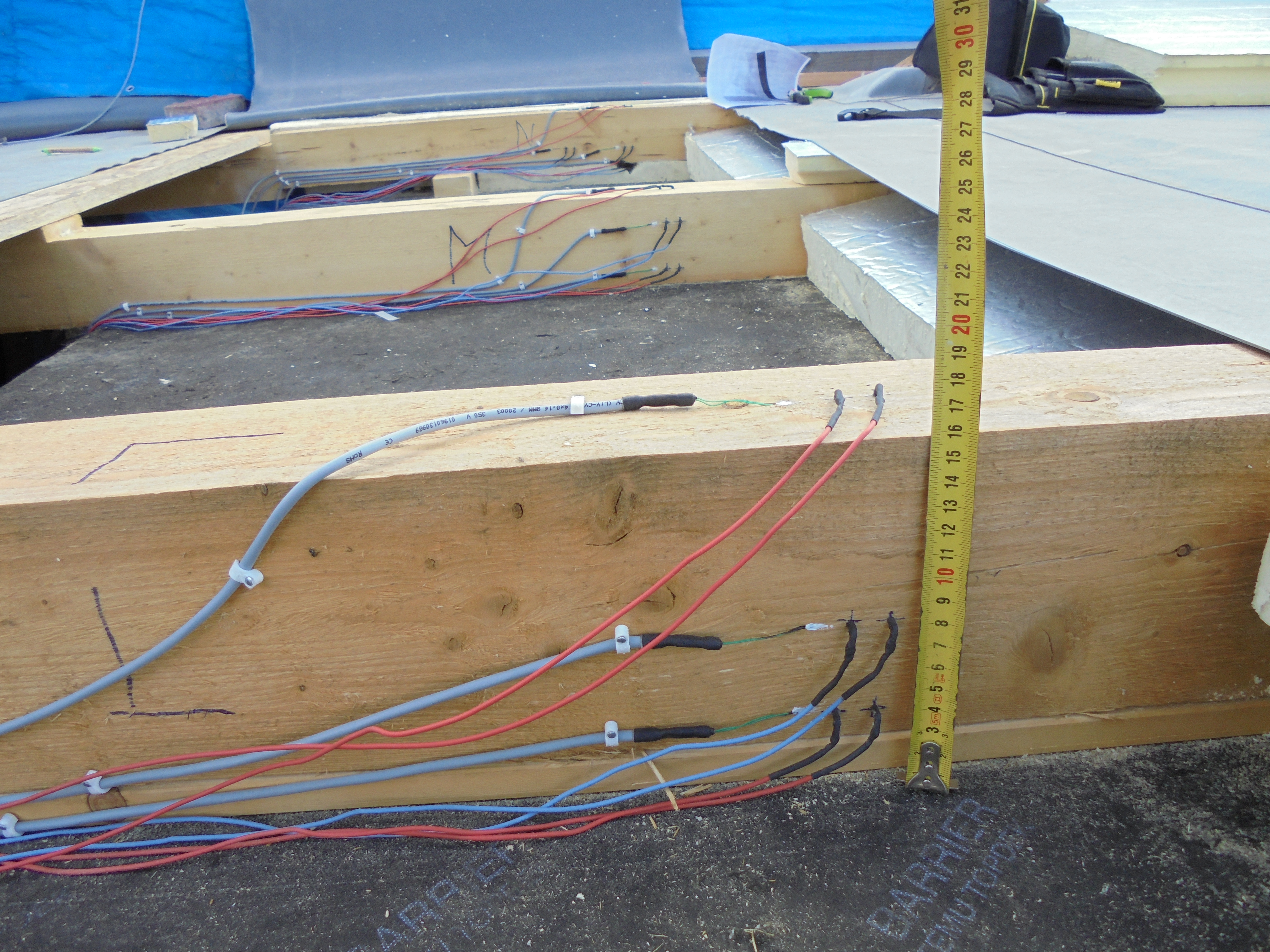 Měření probíhá na různých světových stranách a s různými odstíny – včetně tzv. studených pigmentů, které mají snižovat teplotní namáhání. Cílem je posoudit, jak barva a orientace ovlivňují teplotu a riziko degradace povrchu.