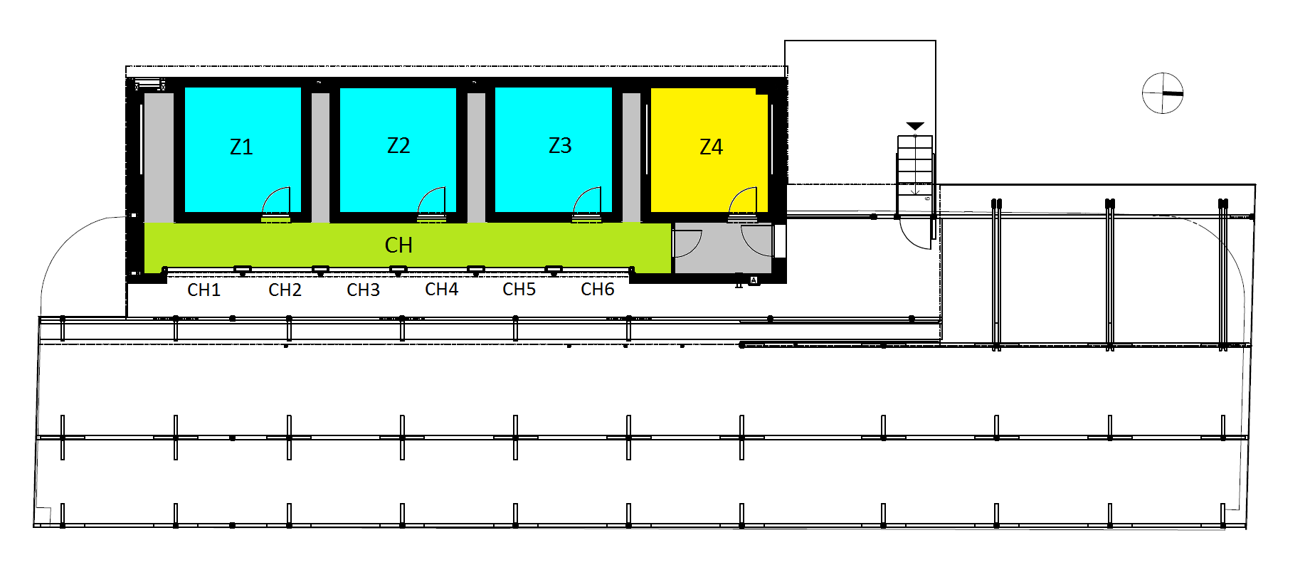 Měření vnitřního mikroklimatu je vysoce přesné a jakékoli odlišnosti v okrajových podmínkách u zón Z1-Z3 by mohly ovlivnit kvalitu výsledků. Proto bylo extrémně důležité zajistit, aby všechny zóny měly, pokud možno, shodné okrajové podmínky. Proto jsou zóny Z1-Z4 vzájemně oddělené větranými průchozími chodbami (šedé proužky mezi zónami na Obr. 3) propojenými do hlavní chodby CH. Stěny zón jsou provedeny jako vysoké překlady tak, aby byl minimalizovaný styk se zeminou a pod podlahou je ještě navíc provedena průběžná vzduchová vrstva tak, aby i pod podlahou byly stejně podmínky pod všemi zónami.