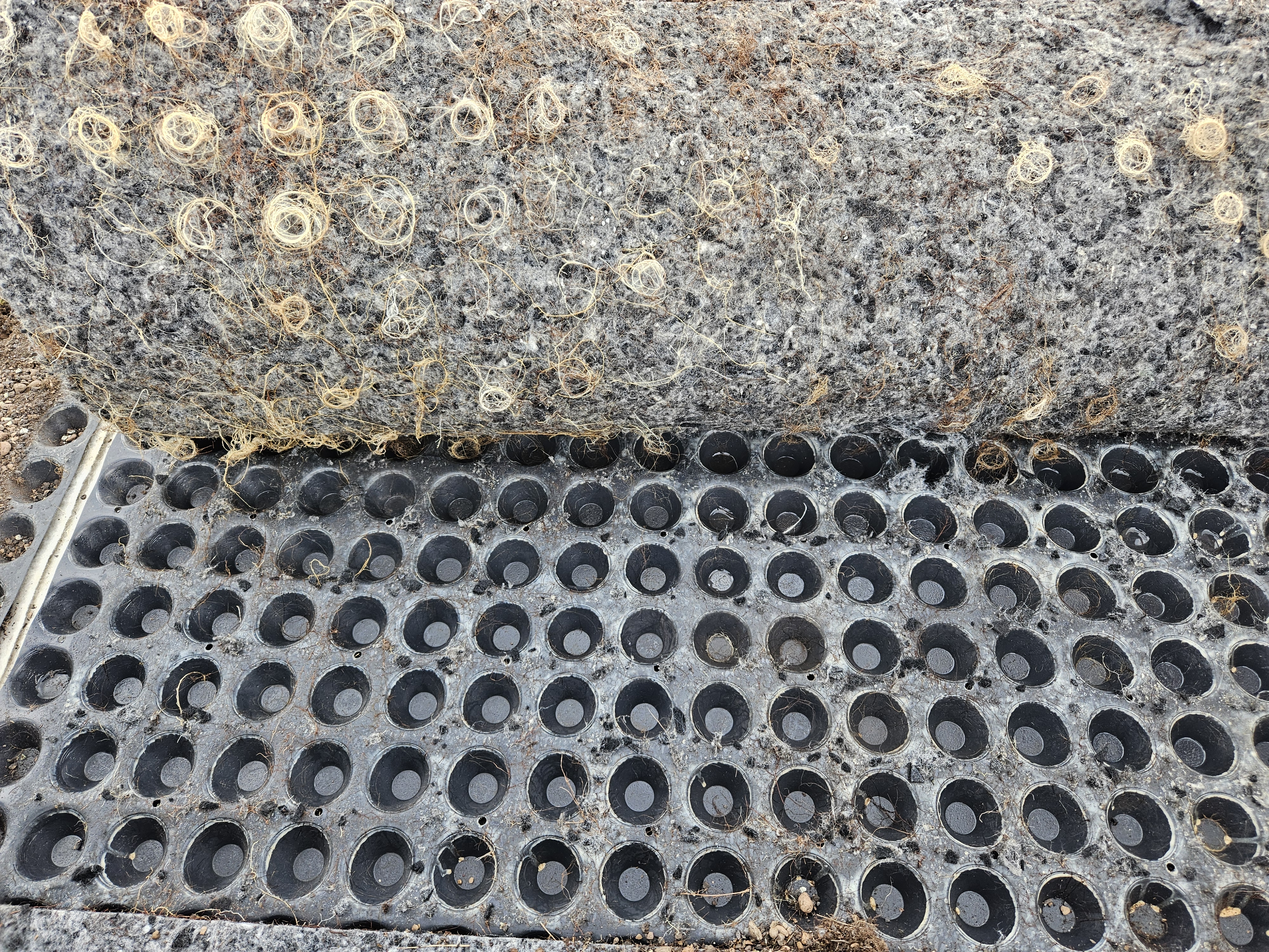 V některých vzorcích zelených střech jsou použity alternativní materiály, například drenážní a hydroakumulační rohože z různých materiálů několika výrobců. Dlouhodobým měřením sledujeme, zda u těchto materiálů dochází k postupné degradaci a změně jejich fyzikálních vlastností.
