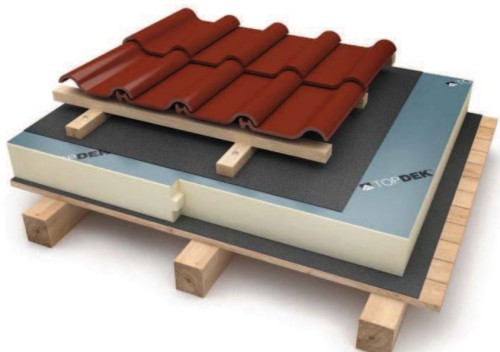 TOPDEK v katalogu DEKROOF, skladby pro nízkoenergetické a pasivní domy, kotevní vruty TOPDEK ASSY, sdružování střešních oken v skladbě TOPDEK, použití této skladby při rekonstrukcích, solární systémy na střeše TOPDEK, pomůcka pro určování požárních požadavků střechy TOPDEK.